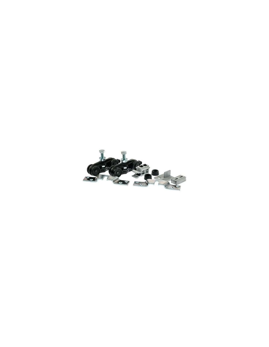 Kit Carro de cojinetes de bola con capacidad de soportar hasta 80 kg de peso. Los carros están previstos de tornillos, garras de sujeción y topes de percusión para el montaje del panel de la puerta.